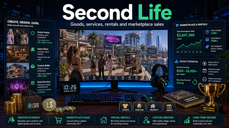 Second Life remains one of the strongest older examples of a game-like platform with a functioning digital economy. Users can create products, sell services, rent property, and build niche communities. That range gives it several income routes instead of one. In a market full of newer platforms, Second Life still works because many users treat virtual commerce seriously. For creators, it remains one of the clearest answers to how games with real rewards can support long-term digital production.